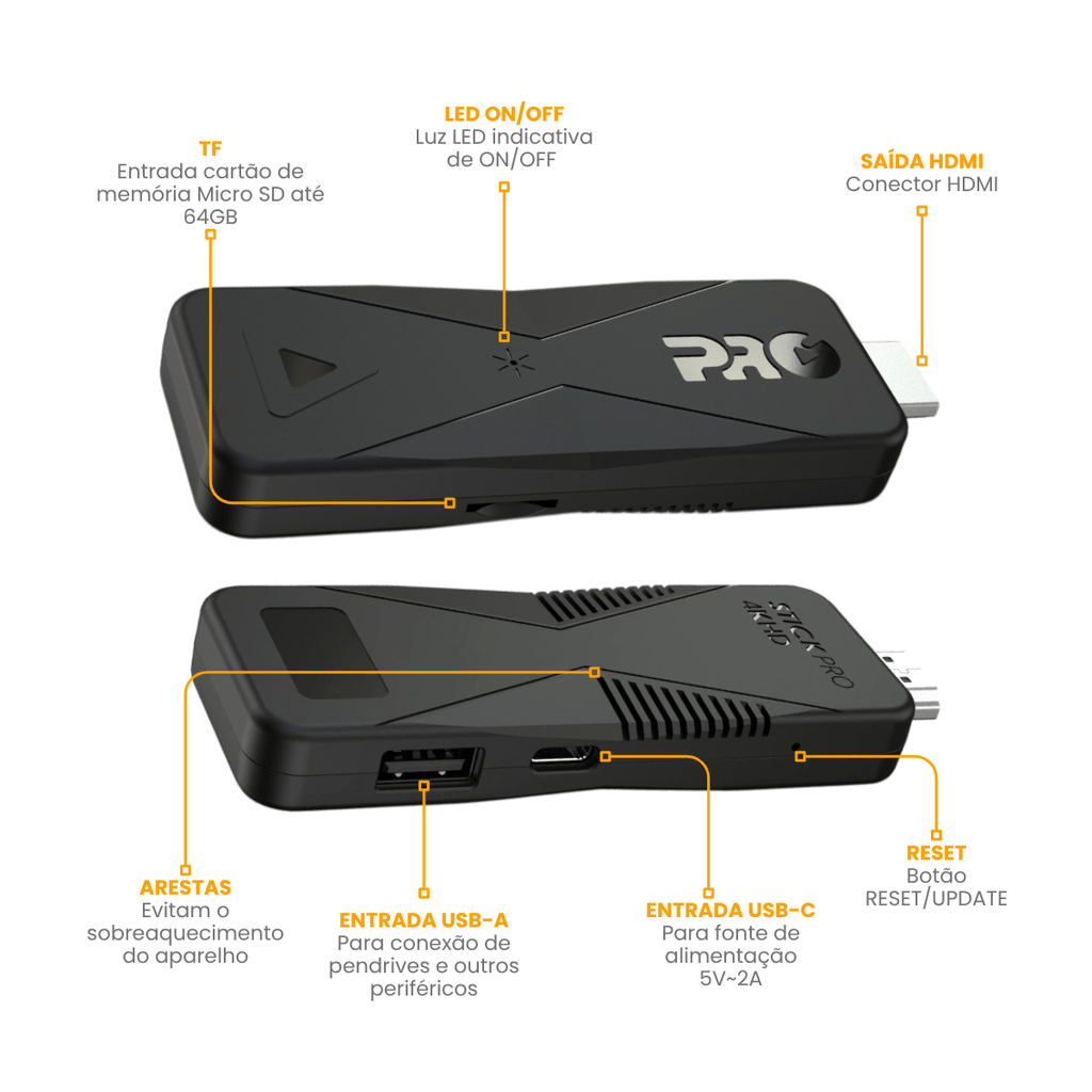 O TV Stick PROSK-1000 da Proeletronic transforma qualquer TV com entrada HDMI em uma Smart TV. Compacto, portátil e com sistema Android 10, permite acesso a plataformas de streaming e aplicativos diversos. Ideal para uso doméstico ou em viagens, oferece imagem 4K, Wi-Fi dual band e controle remoto com comando de voz.