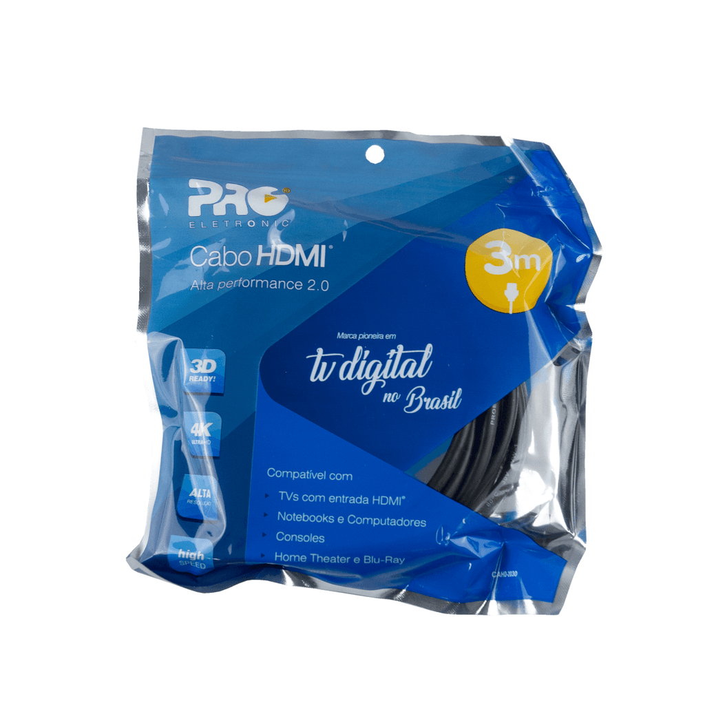 O cabo HDMI Proeletronic CAHD‑2030 é a solução ideal para quem busca qualidade de imagem e som em resoluções de até 4K a 60 fps. Com 3 metros de comprimento, ele garante praticidade na instalação e excelente desempenho em transmissões de áudio e vídeo sem perdas. Compatível com tecnologia 3D, proporciona uma experiência imersiva em jogos, filmes e conteúdos em alta definição.